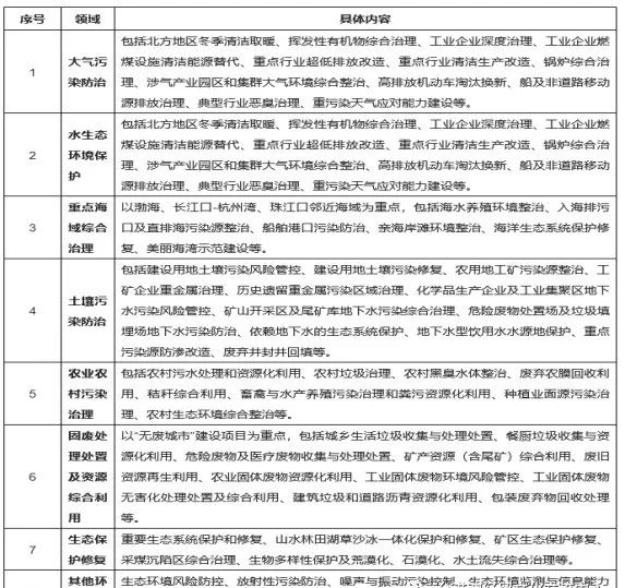 根據(jù)環(huán)辦科財(cái)〔2022〕6號(hào)《生態(tài)環(huán)保金融支持項(xiàng)目?jī)?chǔ)備庫(kù)入庫(kù)指南(試行)》文件精神,入庫(kù)項(xiàng)目的環(huán)境治理內(nèi)容應(yīng)屬于以下八個(gè)領(lǐng)域:大氣污染防治、水生態(tài)環(huán)境保護(hù)、重點(diǎn)海域綜合治理、土壤污染防治、農(nóng)業(yè)農(nóng)村污染治理、固廢處置及資源綜合利用、生態(tài)保護(hù)修復(fù)、其他環(huán)境治理。