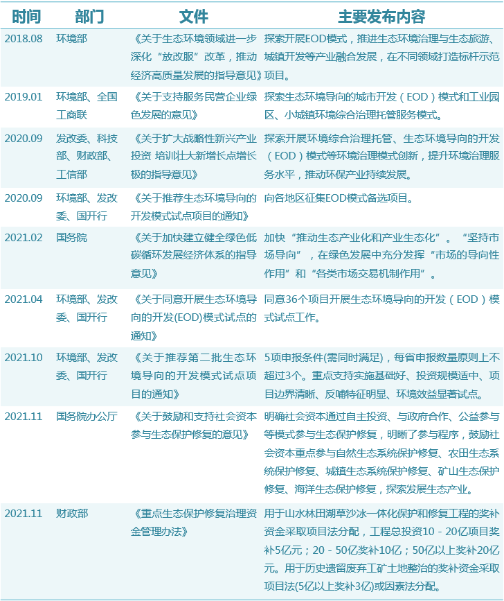 時至今年,多部委陸續(xù)出臺EOD相關(guān)政策,中央重視程度逐增。