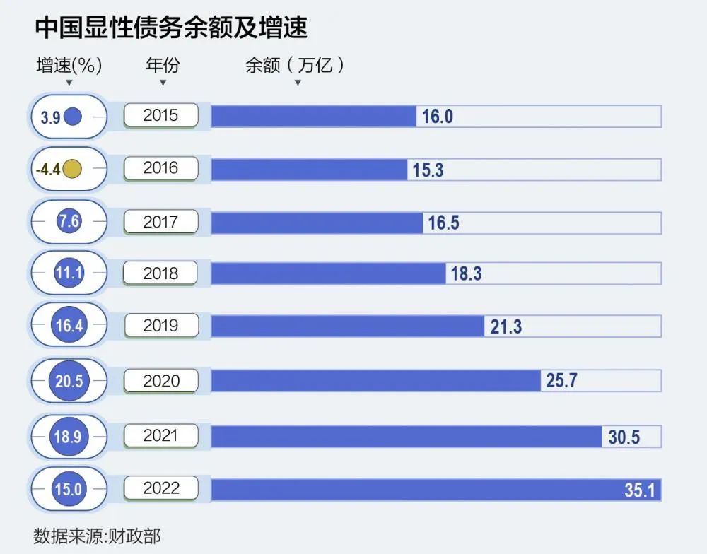 近期公布的《關(guān)于2022年中央和地方預(yù)算執(zhí)行情況與2023年中央和地方預(yù)算草案的報(bào)告》顯示,截至2022年末地方政府顯性債務(wù)余額約35.1萬(wàn)億。這一數(shù)額相比2014年末增長(zhǎng)了127%,增長(zhǎng)相對(duì)較快。