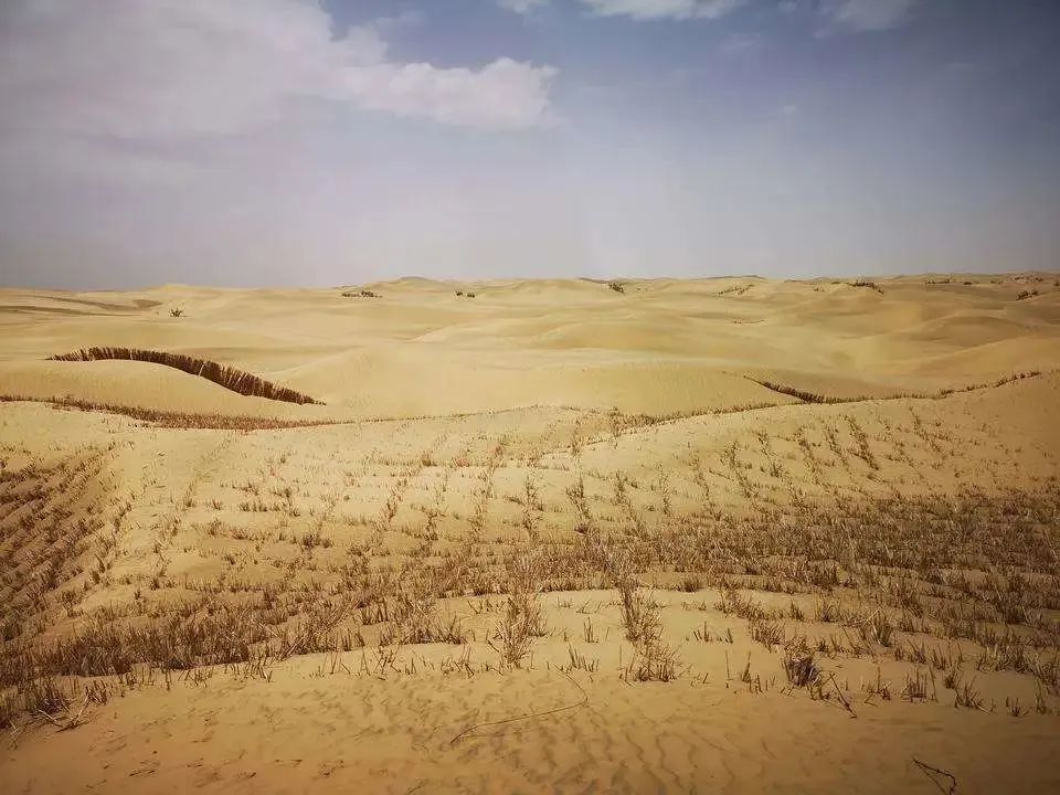 群克位于塔里木河南側(cè)約6.5km處的塔克拉瑪干沙漠北部邊緣,工程區(qū)地面標(biāo)高在870.0~910.4m之間,地形呈現(xiàn)為新月形沙丘、新月形沙丘鏈,復(fù)合型沙山、長條狀沙丘、金字塔形沙丘等形態(tài)。