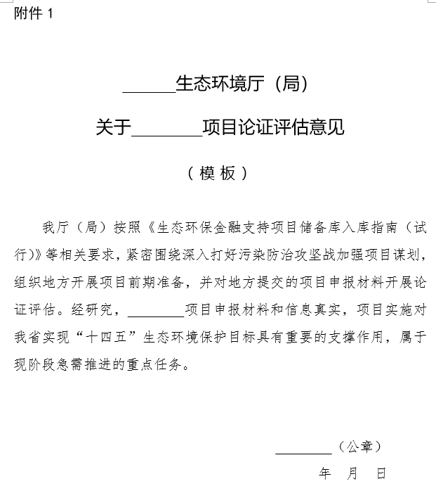 (三)省級生態(tài)環(huán)境部門項(xiàng)目論證評估意見(模板見附件1)。