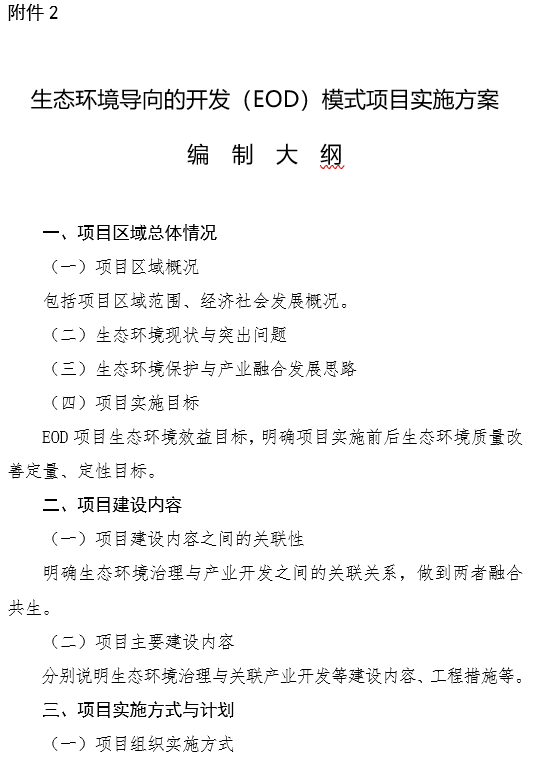 2.生態(tài)環(huán)境導(dǎo)向的開發(fā)(EOD)模式項(xiàng)目實(shí)施方案編制大綱