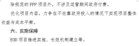 3、除規(guī)范的PPP項(xiàng)目外,不涉及運(yùn)營期間政府付費(fèi),不以土地出讓收益、稅收、預(yù)期新增財(cái)政收入等返還補(bǔ)助作為項(xiàng)目收益。加強(qiáng)重大項(xiàng)目謀劃,優(yōu)化項(xiàng)目建設(shè)內(nèi)容,力爭在不依靠政府投入的情況下實(shí)現(xiàn)項(xiàng)目整體收益與成本平衡。