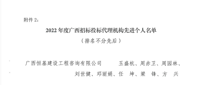 2022年度廣西招標(biāo)投標(biāo)代理機(jī)構(gòu)先進(jìn)個人名單
