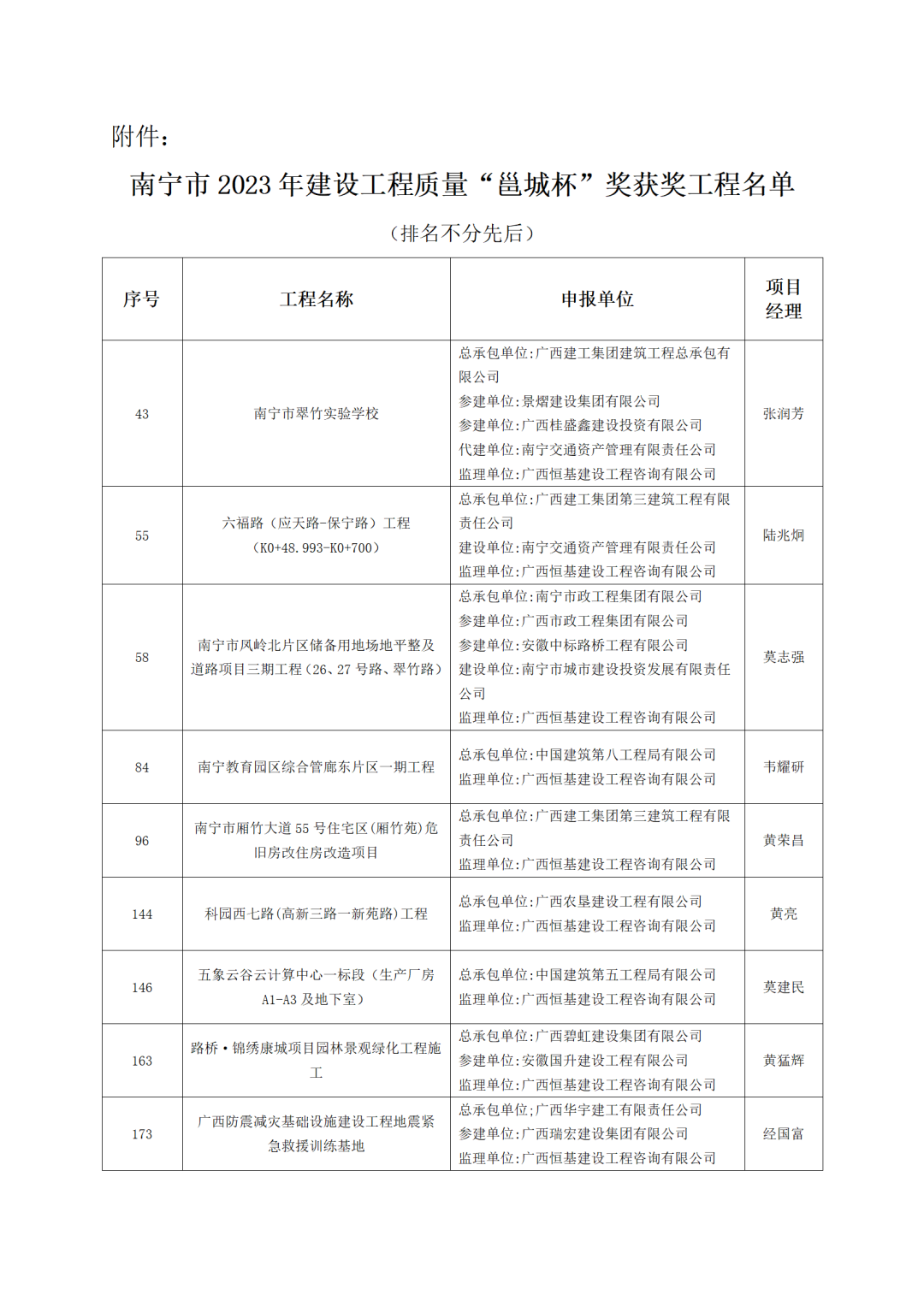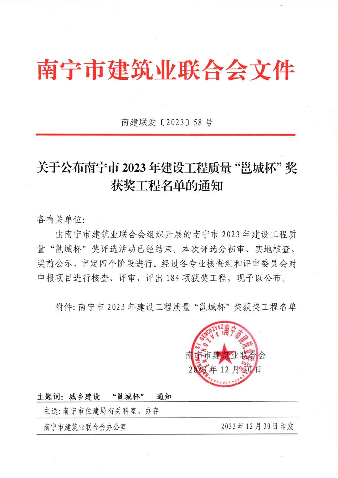 近日,南寧市建筑業(yè)聯(lián)合會公布了南寧市2023年建設(shè)工程質(zhì)量“邕城杯”獎獲獎工程名單。經(jīng)初審、實地核查、獎前公示、審定等4個階段,恒基咨詢監(jiān)理的“南寧市翠竹實驗學(xué)?!钡?個項目,成功斬獲該獎項,充分展現(xiàn)了公司的服務(wù)質(zhì)量和綜合實力。