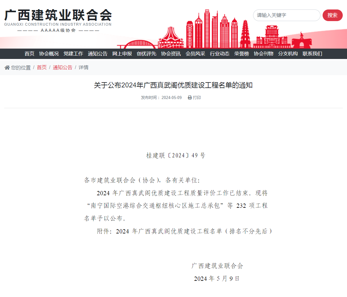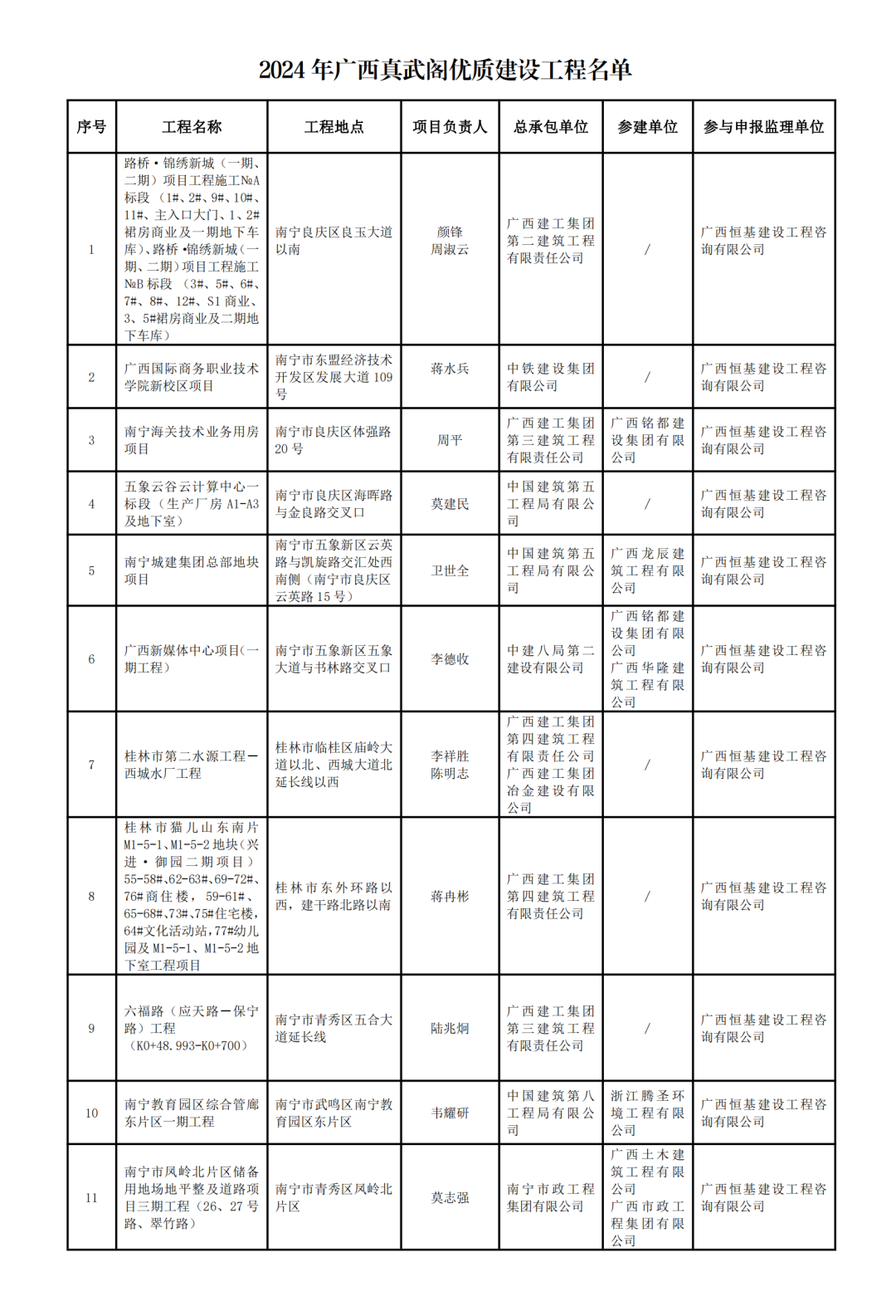 近日,廣西建筑業(yè)聯(lián)合會(huì)公布了2024年廣西真武閣優(yōu)質(zhì)建設(shè)工程名單,恒基咨詢11個(gè)項(xiàng)目榜上有名。
