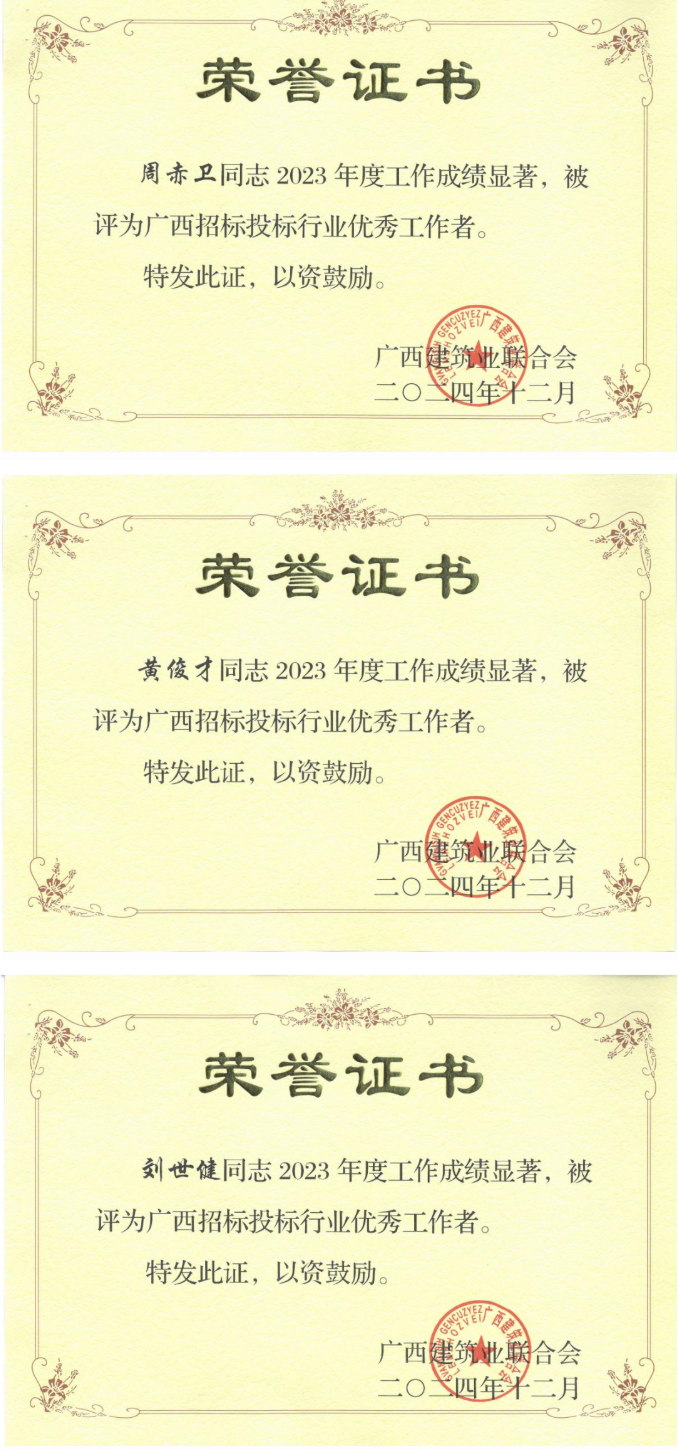 近日,廣西建筑業(yè)聯(lián)合會(huì)發(fā)布了《關(guān)于2023年度招標(biāo)投標(biāo)行業(yè)優(yōu)秀企業(yè)和優(yōu)秀工作者名單的通知》,恒基咨詢憑借在招標(biāo)投標(biāo)領(lǐng)域的優(yōu)秀表現(xiàn),榮獲2023年度“廣西招標(biāo)投標(biāo)行業(yè)優(yōu)秀企業(yè)”稱號(hào)。同時(shí),公司4名員工獲評(píng)“廣西招標(biāo)投標(biāo)行業(yè)優(yōu)秀工作者”。