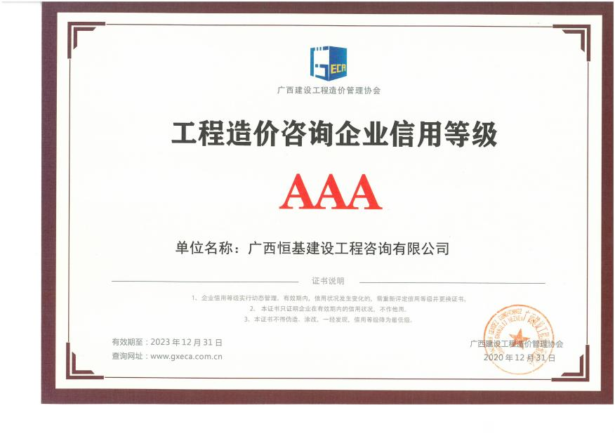 工程造價(jià)咨詢企業(yè)信用等級(jí)AAA